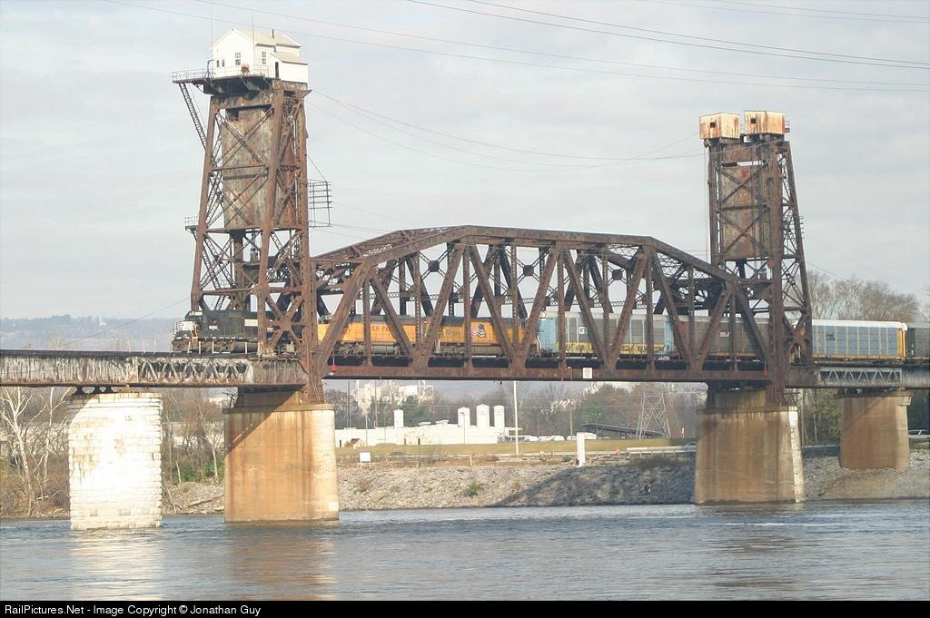 NS 275 crosses the lift span of Tenbridge over the choppy waters of the Tennessee River.