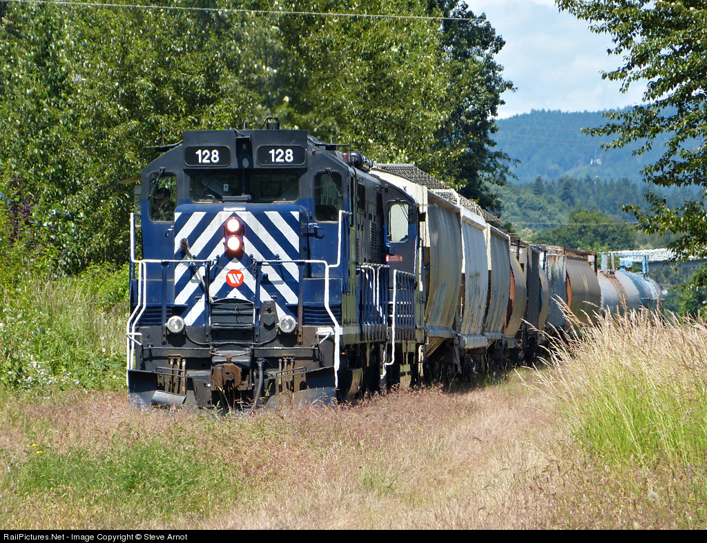 RailPictures.Net Photo: SRY 128 Southern Railway of British Columbia EMD GP9u at Duncan, British Columbia, Canada by Steve Arnot
