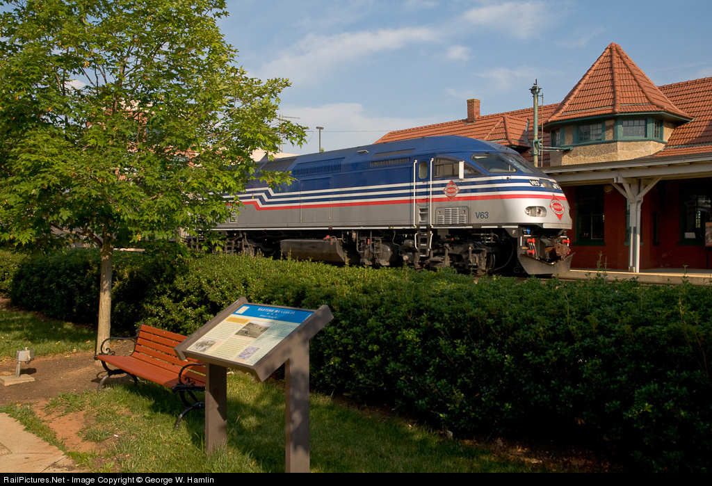 RailPictures.Net Photo: VRE V63 Virginia Rail Express (VRE) MPI MP36PH-3C at Manassas, Virginia by George W. Hamlin