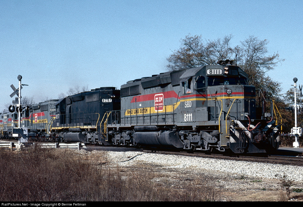 | Seaboard System SD40-2 #8111, SD40 #8297, SD40-2 #8067 and GP16's #4638 & 4616 lead train #329. #8111 was built May 1980 as Louisville & Nashville #8111 and later became CSX #8111 |