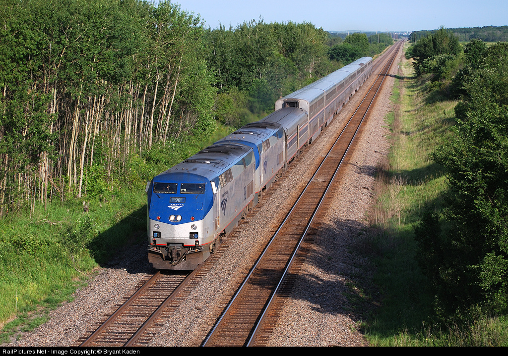 RailPictures.Net Photo: AMTK 98 Amtrak GE P42DC at New York Mills, Minnesota by Bryant Kaden