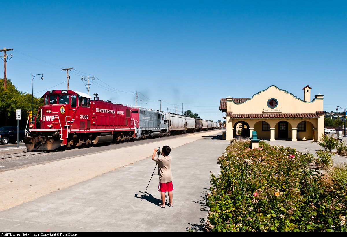 The young railfan seen here got his money's worth when this Northwestern Pacific train rolled into Petaluma.