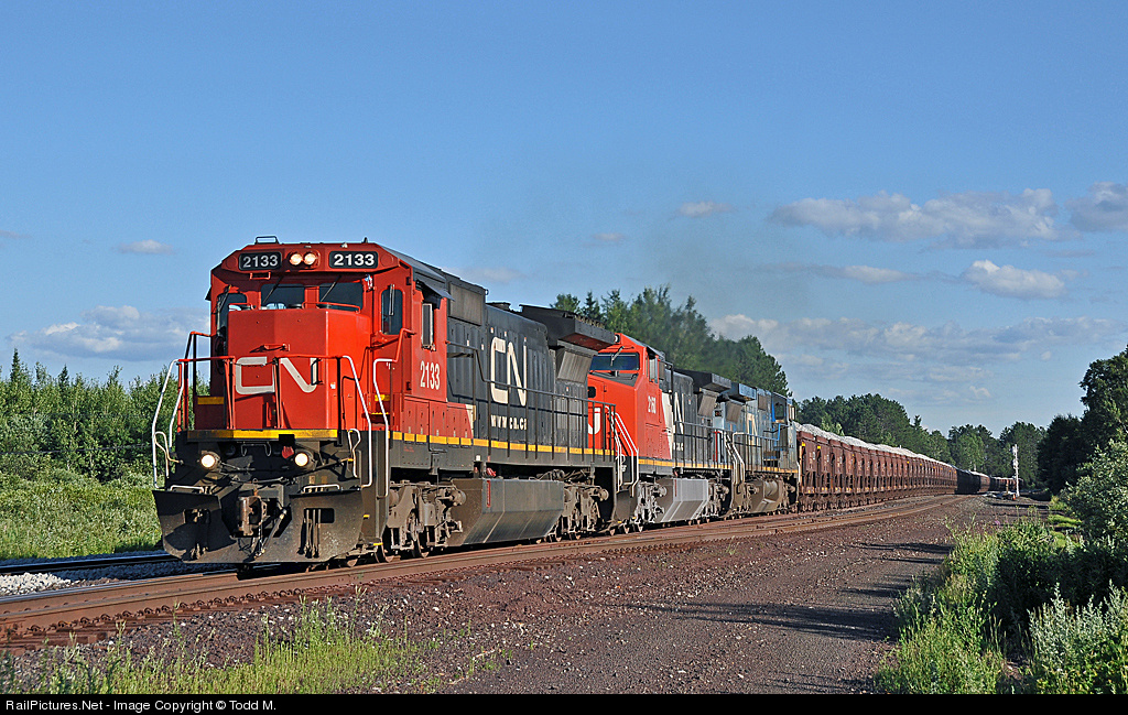 | Hauling limestone to the Minntac mine in ore cars is not an everyday thing but when the usual to this job former Minntacand then Missabe side dump cars are in the shops for rebuilding CN makes due with what is available to keep the process of taconite production moving. |