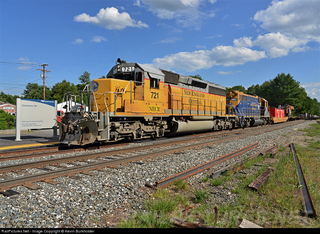 After a load shift ended the America's Cup Express 'boat train' - a special rail move from Davisville, RI to San Francisco, CA via Seaview Transportation, P&W, NECR, CN and Union Pacific of the America's Cup boats and support equipment inside containers aboard the 112-car train - the NECR portion came to an unexpected halt due to a shifted load. The train had been running with the RailAmerica-painted TP&W GP40-2 4053 leading, however it was cut off when the crew tried to depart light engine. A nearby farmer whose crossing was blocked by the 8,300 foot train, showed up and 'advised' the crew that all of his vehicles were 'trapped' inside the farm property by the train, the crew returned to the two remaining units - the NECR units pictured - and pulled the train clear for him to move his vehicles to the other side and then back back into the siding, awaiting the arrival of a crane to fix the shifted load.