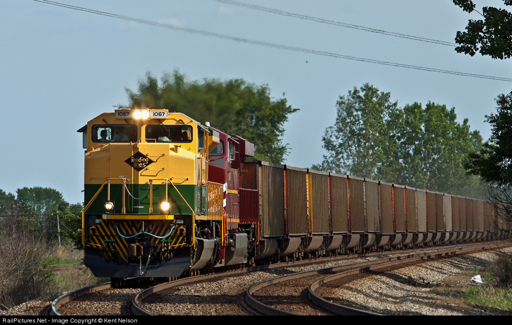 Heritage unit Reading Lines 1067 leads a loaded coal north east of Delaware, Ohio on the NS Sandusky District bound for Detroit.