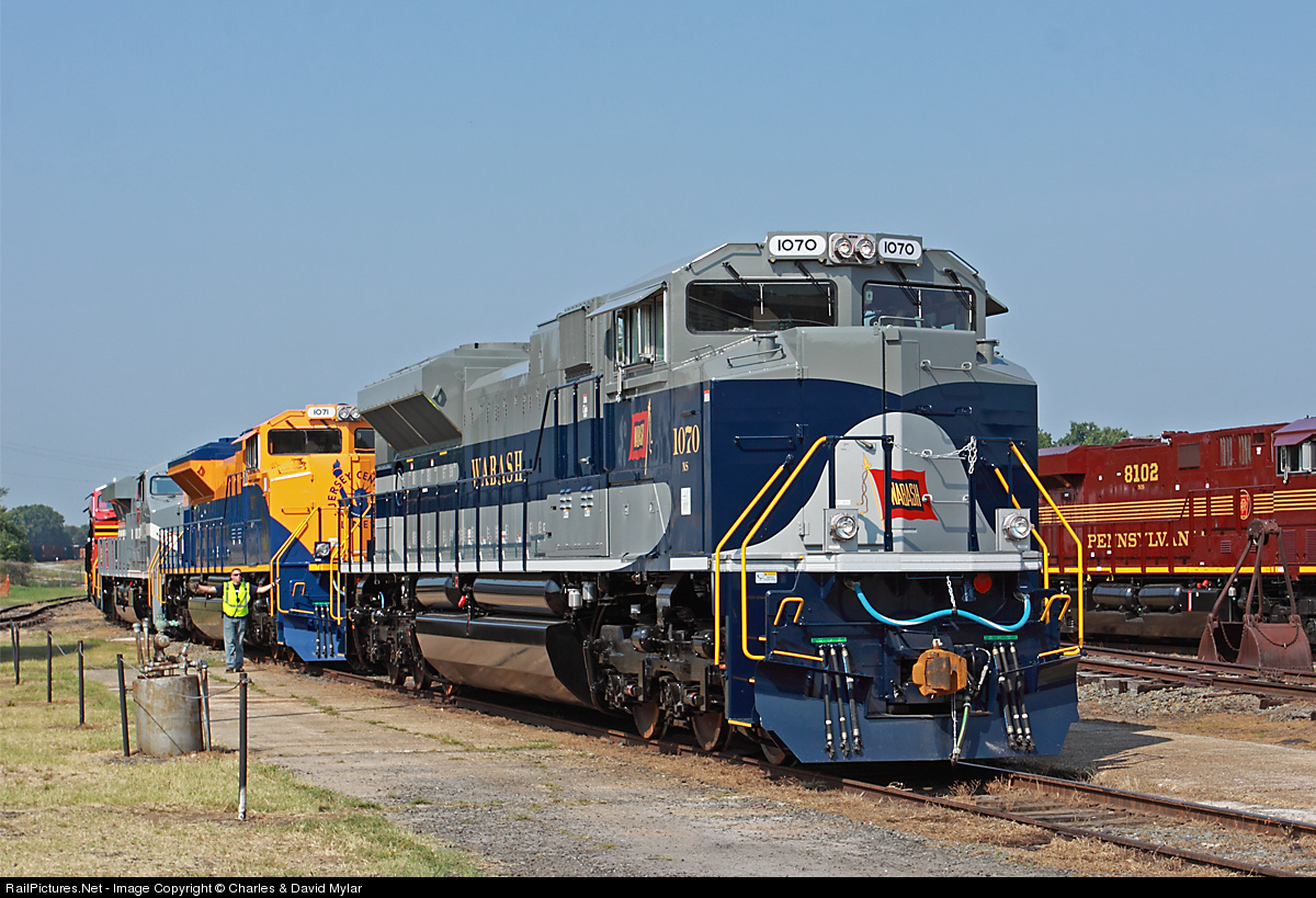 The Wabash SD70ACe 1070 is added to the Central of New Jersey SD70ACe 1071, Monongahela heritage ES44AC 8025, Norfolk Southern Heritage ES44AC 8114, “30th Anniversary” SD70ACe 1030, and Savannah and Atlanta SD70ACe 1065 as crews build the “Roanoke Cut” of Heritage locomotives. They will depart as train 960 with the Norfolk and Western Heritage ES44AC 8103 leading the twelve unit set of Heritage locomotives. The Virginian (1069), Interstate (8105), Penn Central (1073), Illinois Terminal (1072), and Lackawanna (1074) Heritage units have yet to be added to the consist.