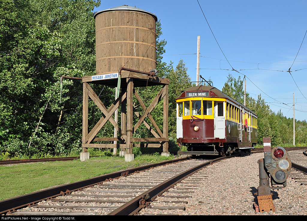 The Glen Mine trolley runs past Mesaba Junction and heads to the barn for the night after a day of hauling tourists around the Minnesota Discovery grounds. Some more info on the trolley follows: The Minnesota Discovery Center trolley is originally from Melbourne, Australia and was built in 1928. It is very similar to the trolleys used here on the Iron Range in the early 20th century. The first, and only, interurban electric transportation system on northeastern Minnesota’s Iron Range was introduced in December of 1912. The first car departed the city of Virginia at 5 a.m. and made the 8 mile ride to Gilbert. A Finn paid the first fare of 20¢. The electric railway system was seen as the new and modern means of transportation and allowed people on the Range (population of around 55,000) to visit other towns more easily. Public transportation up to that time had been all but nonexistent. There were a few cars and limited railroad transportation, but the horse and buggy served most. Track was expanded to cover 30 miles between Gilbert and Hibbing with six cars offering hourly service daily between 6 a.m. and midnight. The streetcars were the most modern available and could travel at speeds up to 40 miles per hour. They were equipped with modern conveniences including heat, smoking cars, and toilet facilities. The Mesaba Railway began to change the Iron Range. People could now choose where to live, where to shop, and where to find entertainment. There were weekly athletic, musical, and theatrical events that people could now attend more easily and towns began to take on a more cosmopolitan feel.