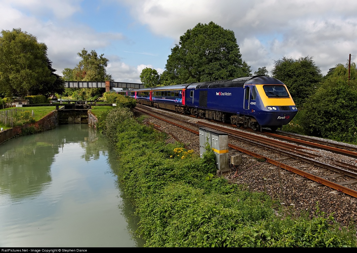| An FGW HST set with power car 43140 in the lead passes the classic Western Region location of Little Bedwyn lock on the Kennet and Avon canal with 1A76 06:55 Plymouth - Paddington |