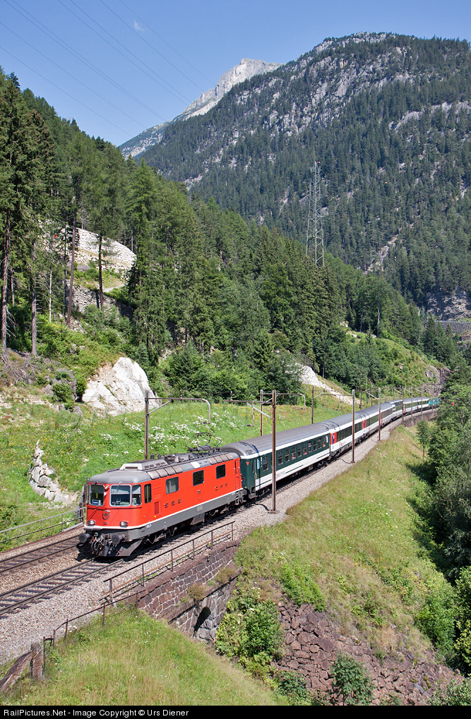 | SBB interregio train from Zürich to Locarno on the third level on the Gotthard north ramp. |