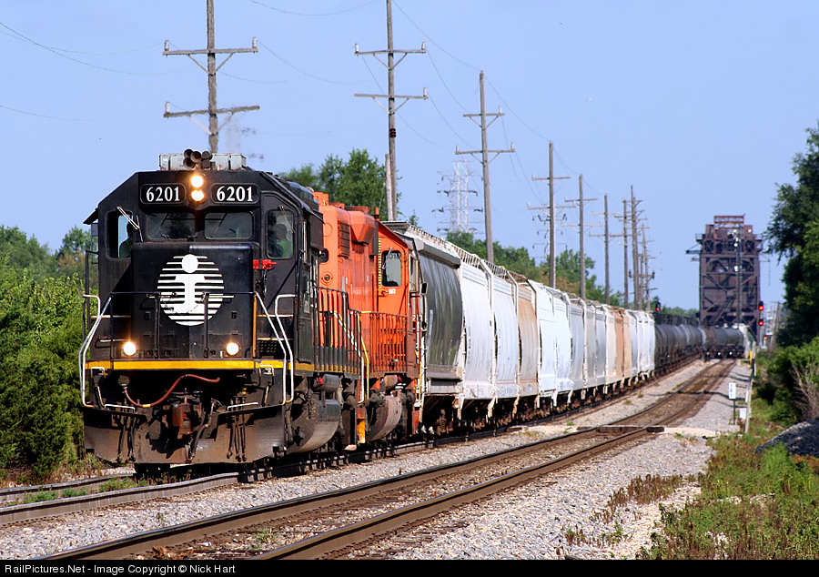 | A late, return trip of the L509 made for quite the nice sight this morning, as IC 6201 (Operation Lifesaver) and EJ&E 662 (J-Ball) lead their train over the famous EJ&E Bridge 198 in the background. It sure is good to see a good old IC SD40 doing the honors. |