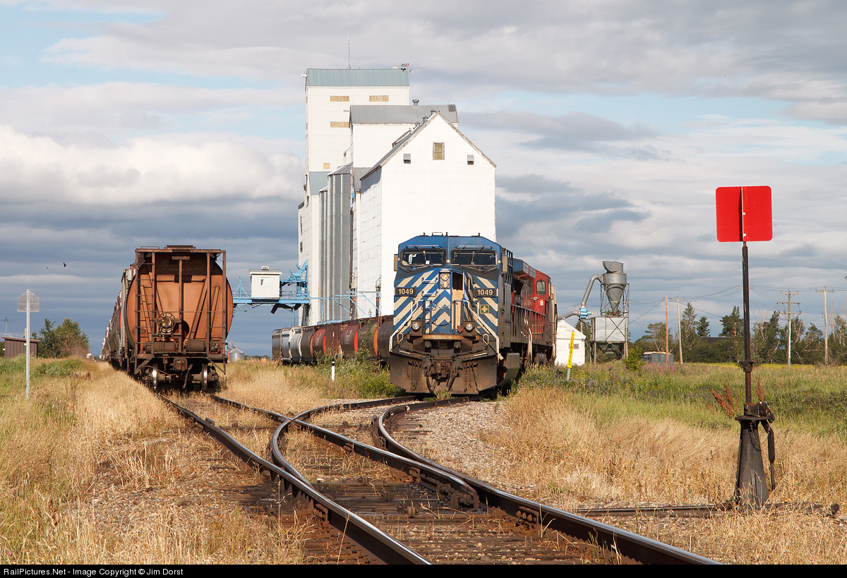 The eastbound local out of Red Deer sets out empties at the elevators in Killam Alberta.