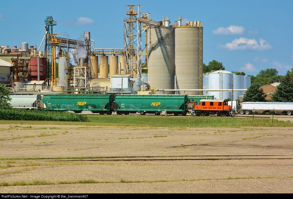 Iowa traction number 50 is a 50-ton steeplecab, built by Baldwin-Westinghouse in 1920 as Washington & Old Dominion Number 50. It was acquired by the Cedar Rapids & Iowa City in 1947, was rebuilt and renumbered number 58. In 1955 it was sold to the Kansas City-Kaw Valley Railroad and became their number 507. Finally, in 1962 it was sold to the Iowa Terminal and renumbered 53, later becoming IATR 50. The unit is seen here switching out Mason City's AGP plant