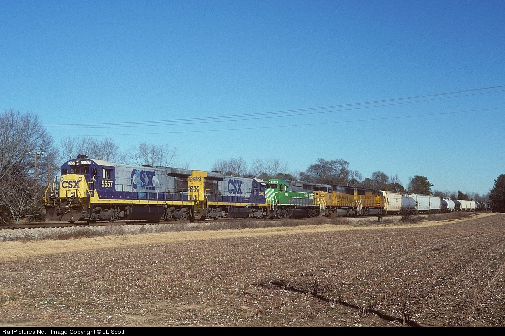 CSX Q617 heads south at Auburn's "Cotton Patch Crossing" (Chadwick Lane), with a colorful consist including a pair CSX B30-7s, an FURX SD40-2, and a pair of UP SD60Ms. Unfortunately, this scene is no longer possible thanks to an "RV Park" built on top of the cotton patch, for which I can't possibly express the extent of my disgust...