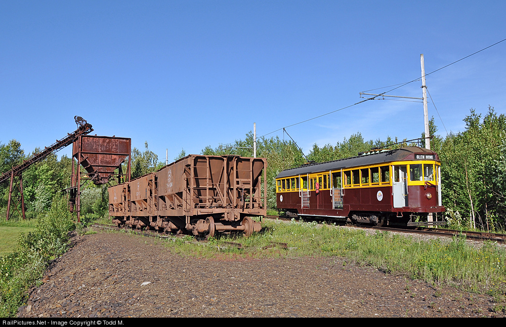 The Glen Mine trolley runs past a re-creation of a natural ore load-out complete with DM&IR ore cars as it continues it's run around the 2.5 mile loop around the Minnesota Discovery grounds. Some more info on the trolley follows: The Minnesota Discovery Center trolley is originally from Melbourne, Australia and was built in 1928. It is very similar to the trolleys used here on the Iron Range in the early 20th century. The first, and only, interurban electric transportation system on northeastern Minnesota’s Iron Range was introduced in December of 1912. The first car departed the city of Virginia at 5 a.m. and made the 8 mile ride to Gilbert. A Finn paid the first fare of 20¢. The electric railway system was seen as the new and modern means of transportation and allowed people on the Range (population of around 55,000) to visit other towns more easily. Public transportation up to that time had been all but nonexistent. There were a few cars and limited railroad transportation, but the horse and buggy served most. Track was expanded to cover 30 miles between Gilbert and Hibbing with six cars offering hourly service daily between 6 a.m. and midnight. The streetcars were the most modern available and could travel at speeds up to 40 miles per hour. They were equipped with modern conveniences including heat, smoking cars, and toilet facilities. The Mesaba Railway began to change the Iron Range. People could now choose where to live, where to shop, and where to find entertainment. There were weekly athletic, musical, and theatrical events that people could now attend more easily and towns began to take on a more cosmopolitan feel.