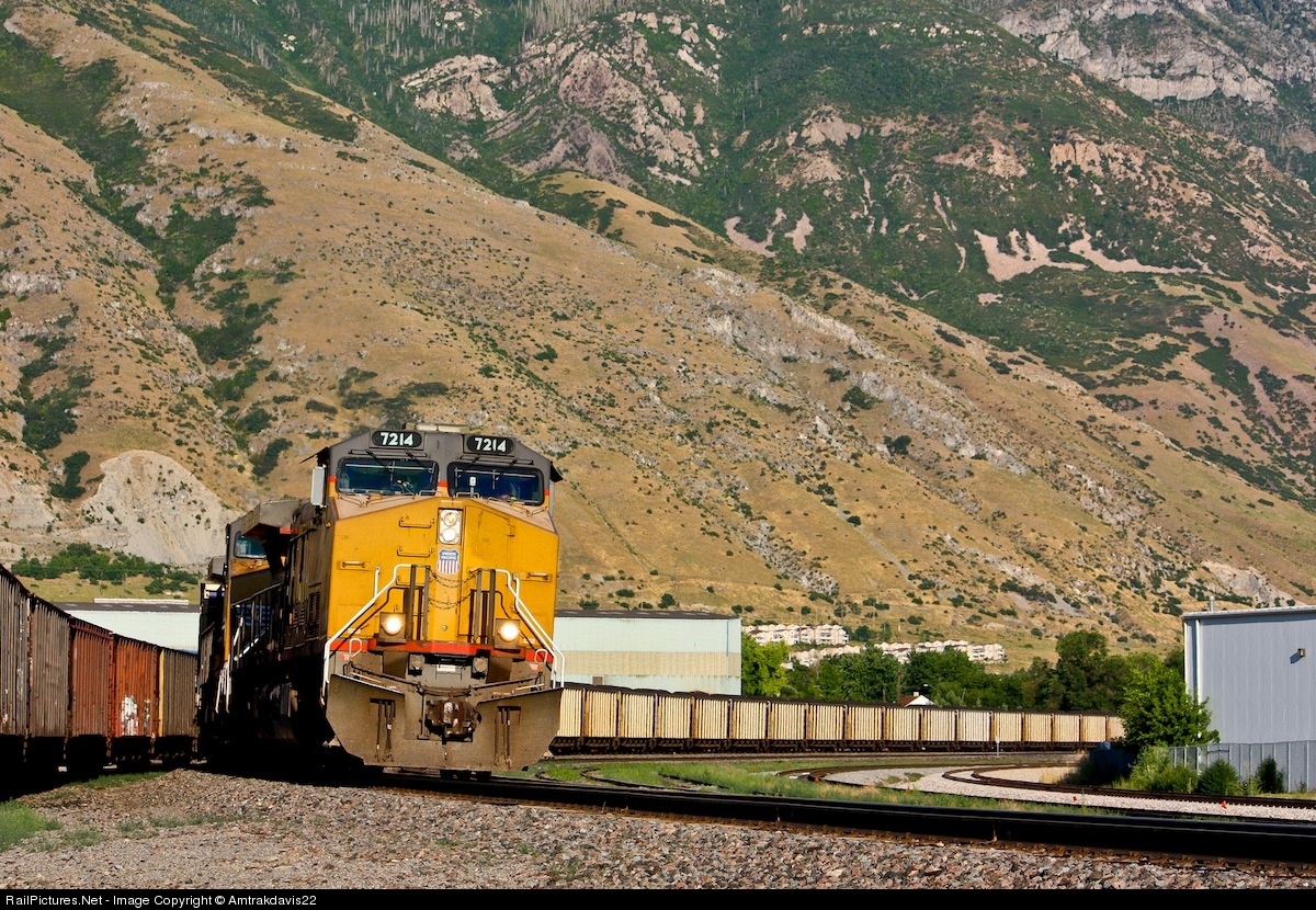 | Union Pacific 7214 drags a heavy coal train out of the Provo Yard as it begins it's journey towards Valmy, NV on the UP Provo Subdivision. |