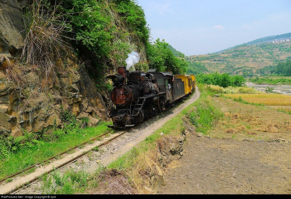 On a very nice day, the little narrow gauge steam locomotive hauling 4 passenger coaches heading to the terminal station.1steam locomotive +3 passenger coach + 1 flat car + 1 caboose.This private railroad has been decades,transport coal on occasion,762mm gauge.