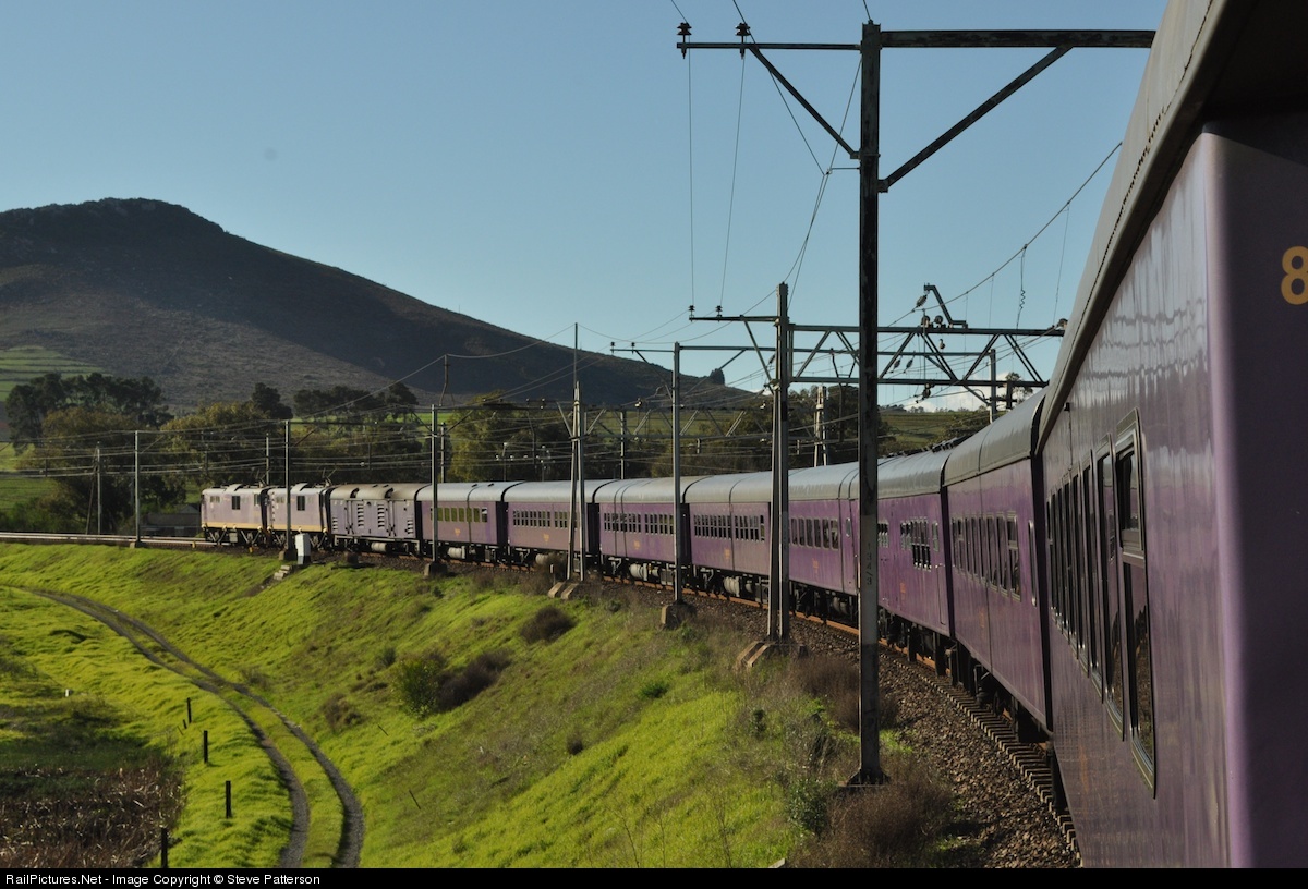 | On June 7, 2011, Shosholoza Meyl's purple Premier Classe train nears Wellington, South Africa after leaving Cape Town on its 918-mile overnight run to Johannesburg.