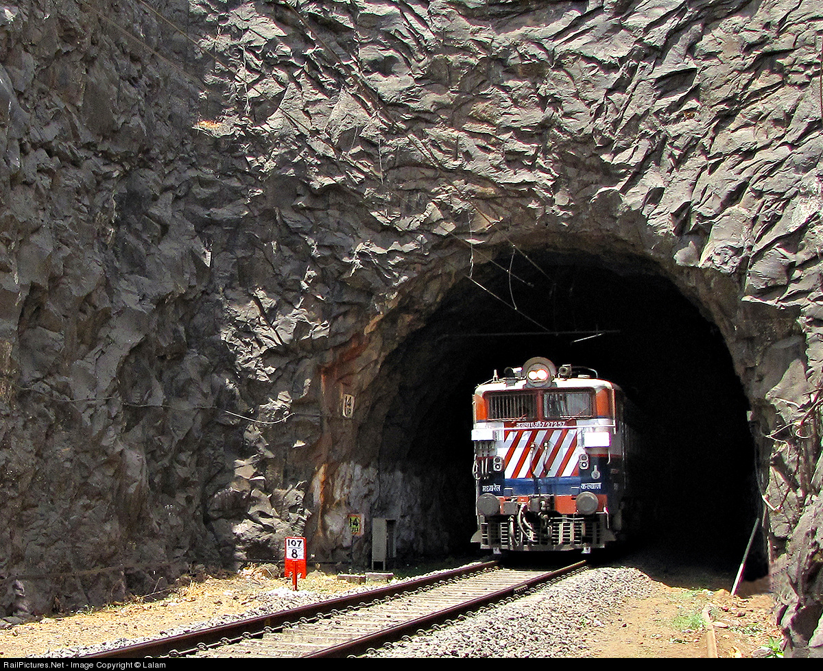 WAG-7 class locomotive coming out of a tunnel in Khandala ghat section.