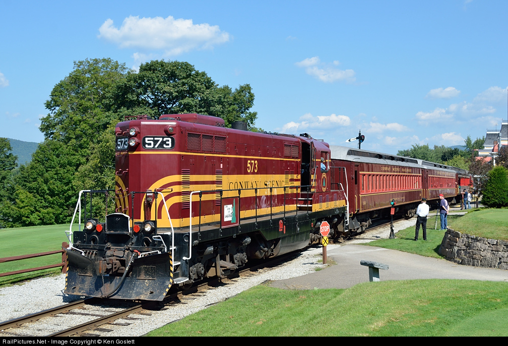 RailPictures.Net Photo: 573 Conway Scenic Railroad EMD GP7 at North Conway, New Hampshire by Ken Goslett