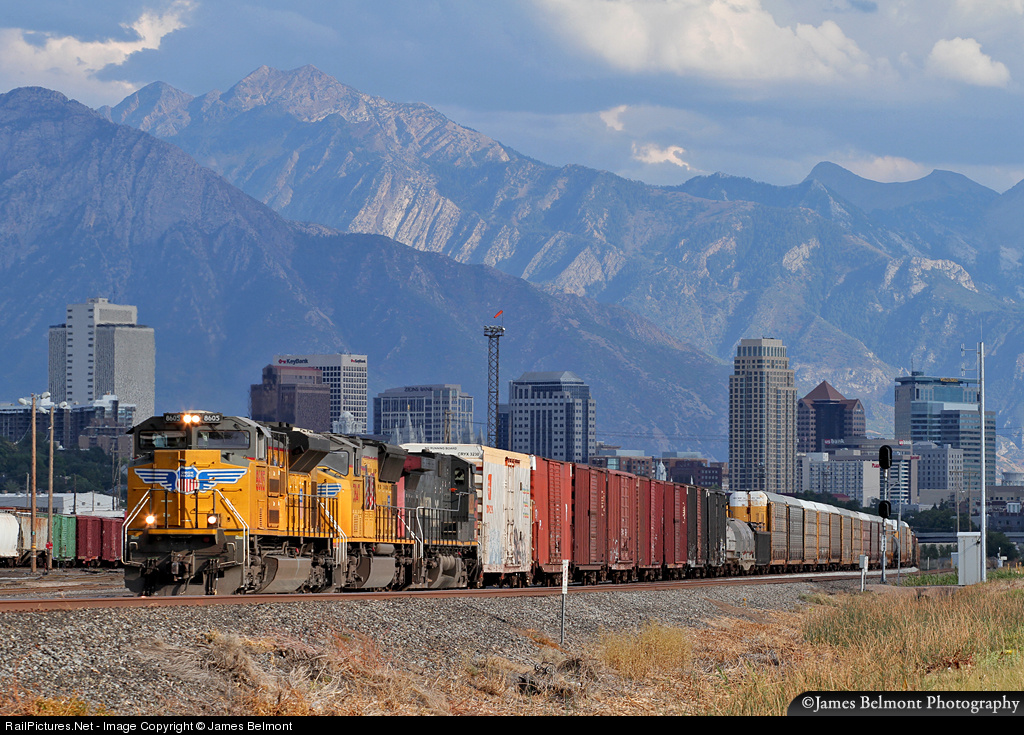 | UP's MWCNP (West Colton, CA - North Platte, NE) freight slows to make a 37 car pickup at North Yard in Salt Lake City. |