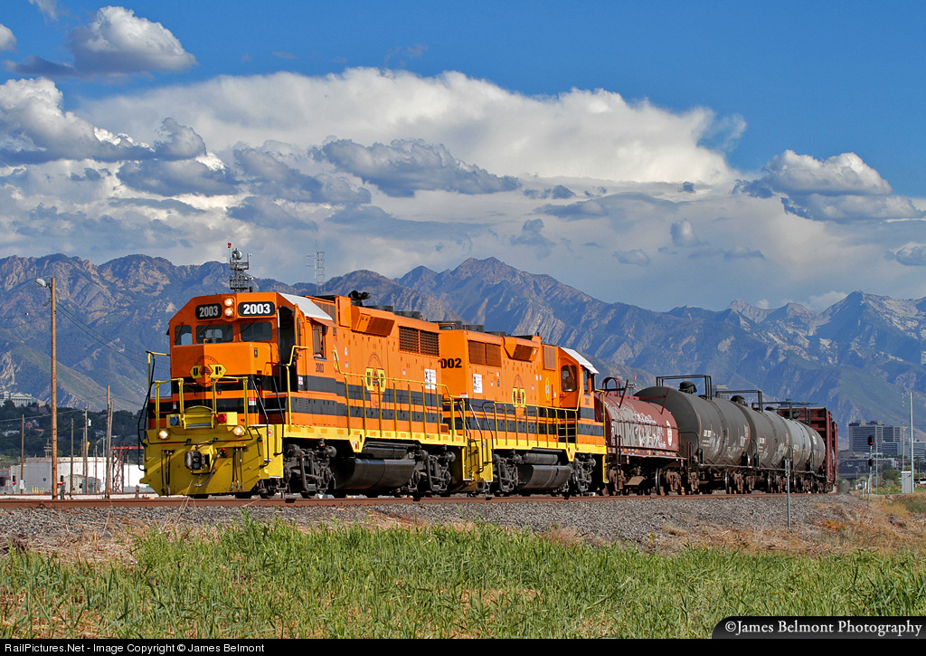 With a nice bank of clouds forming over the Wasatch Front, Utah Railway's RUT311 local rambles east by UP's North Yard in Salt Lake City. Engineer Fred has his eight car train on the path to the SP Woods Cross Industrial Lead to serve industries along the former D&RGW SLC-Ogden mainline.