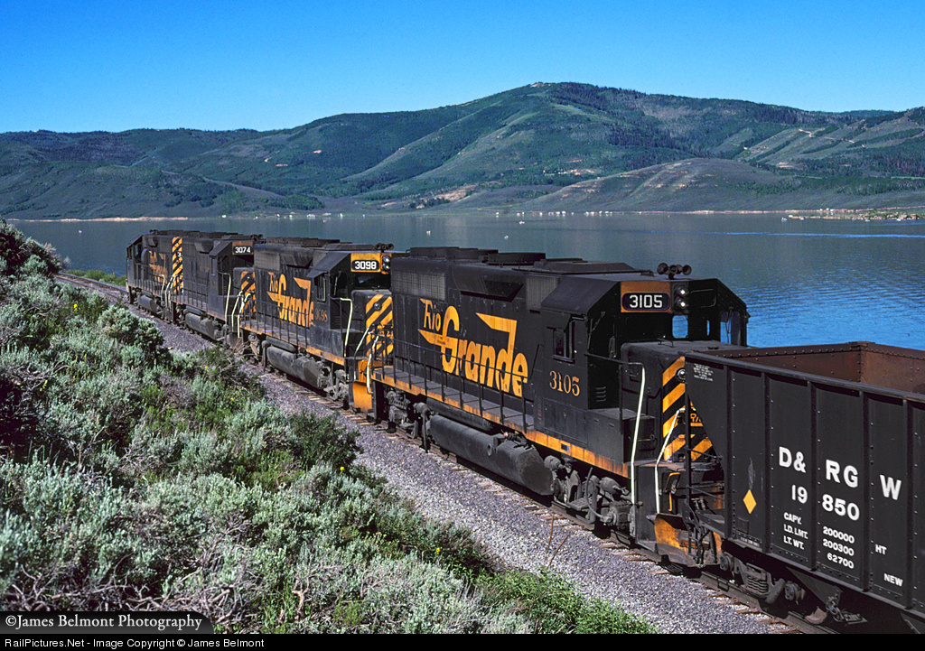 While spending a delightful morning fishing with my dad, grandfather, and brother, a coal train appeared along Scofield Reservoir, bound for the Valley Camp mine. I scrambled from the shore up to the roadway, then up a steep cut to the track, then up one more hill to grab this view on a beautiful June morning in 1980. Thank goodness I was a teenager, and could tackle any athletic feat to 'get the shot'. I recall we all caught our limit of Rainbow Trout that day and enjoyed a delicious dinner that night at home with grandpa.
