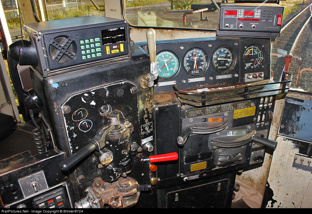 The cab of an EMD SD40-2. Information withheld by request of the railway employee who allowed me up.