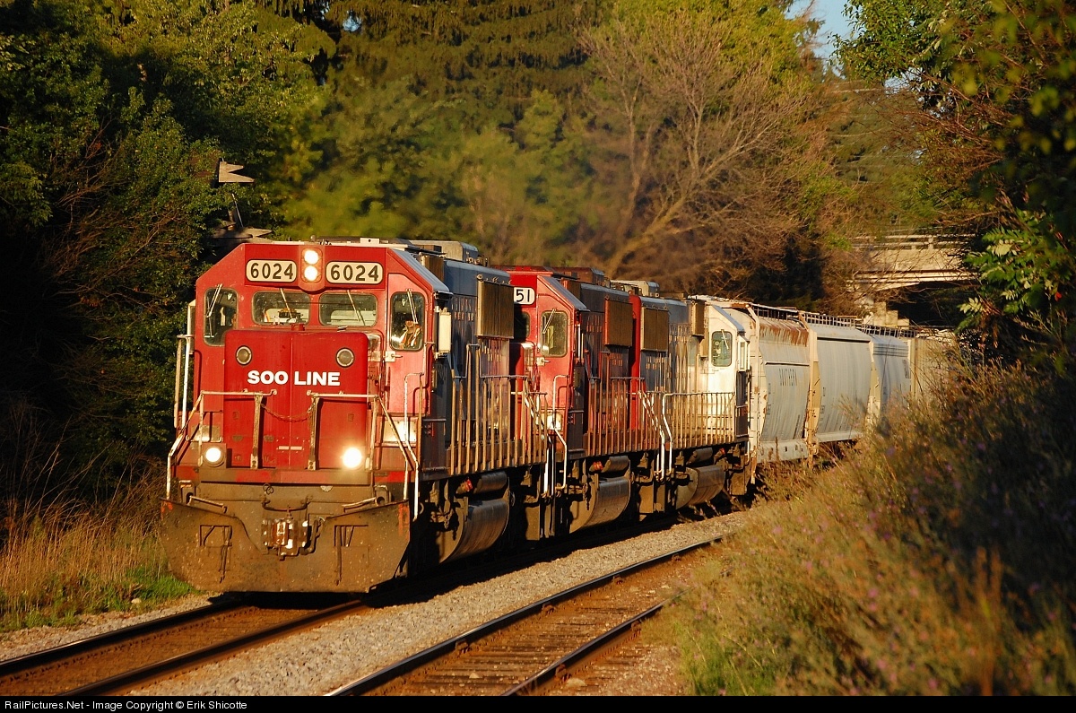 | Just mere minutes after sunrise, a trio of classic SOO SD60s smash the silence in Nashotah, WI. Gotta love the class lights! |