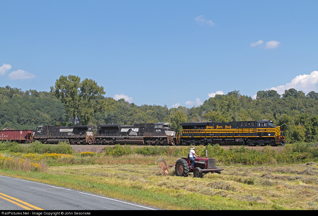 Located on the Vermont border on the east side of Rensselaer County, the Town of Petersburgh is a very rural farming area. On the first day of September a farmer pauses from raking hay with his International 444 tractor to notice the Nickel Plate Road heritage unit rolling east with an 88 car loaded coal train for Bow, NH. Built between 1967 and 1975, the International 444 is still younger then the Nickel Plate that was merged into N&W in 1964. And even though THIS Nickel Plate was built a few months ago courtesy NS, this is still an historic meeting for upstate NY. Train symbol is NHB-46 but it was referred to simply as the loaded coal train by the crew and dispatcher.