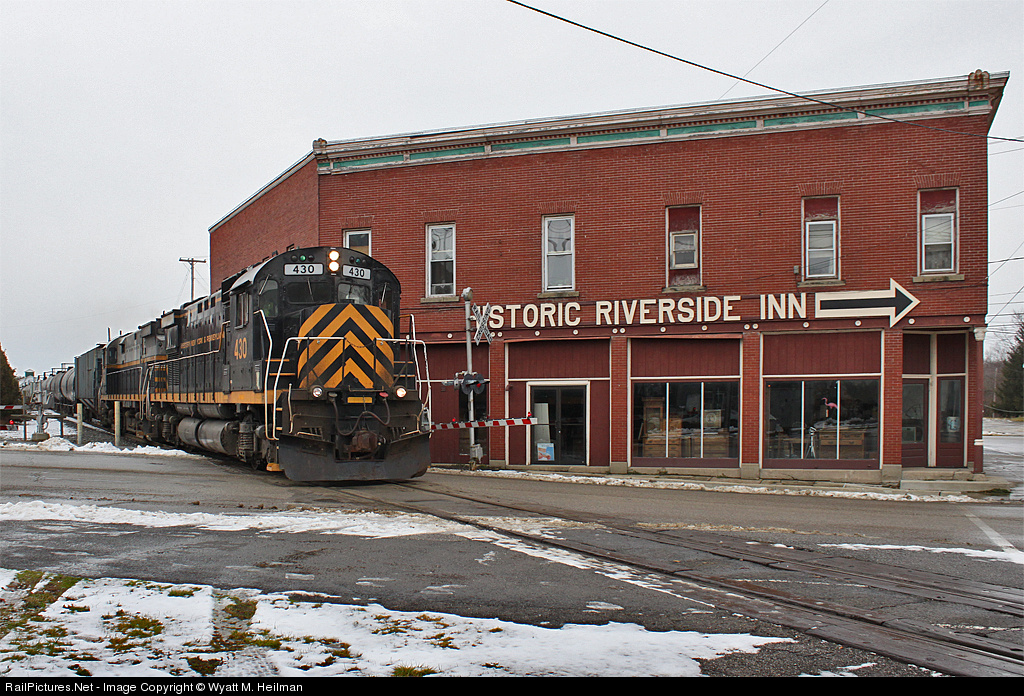 Two WNYP ALCO's squeeze through the tight confides around Main Street in Cambridge Springs. Not long ago, one could sit around this town all day and watch high priority trailer trains with Erie Lackawanna power roll through town.