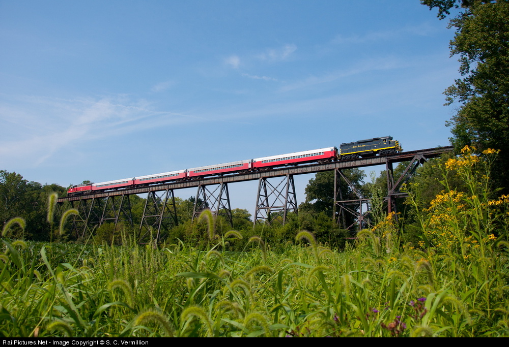 Nickel Plate Road 901 rolls across High Bridge just north of Quincy. NKP 901 pulled three passenger trains from St. Paris to Maplewood and return this day. NKP 901, formerly CNRY 85, was recently repainted from I&O Red and White to NKP Black and Yellow.
