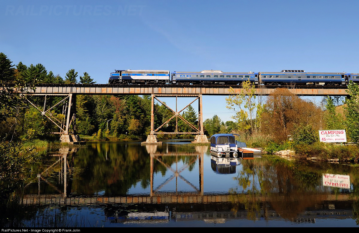 First revenue service run for the newly acquired EMD FL9 as the Orford Express crosses one of the trestles in Eastman on a gorgeous September day.