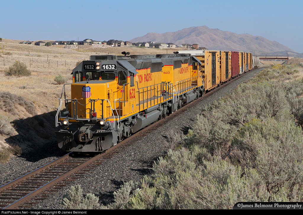 Union Pacific's LUL57 local tops 5033 ft. York Summit on UP's Sharp Subdivision. The 11 car train, with two spiffy SD40Ns for power, made easy work of the seven mile 1% grade from CP C735, West Payson, topping the hill at 48 mph. The six box cars were picked up at Longview Fiber in Spanish Fork while the five covered hoppers will be set out at Ashgrove Cement (Martmar) in Leamington Canyon.