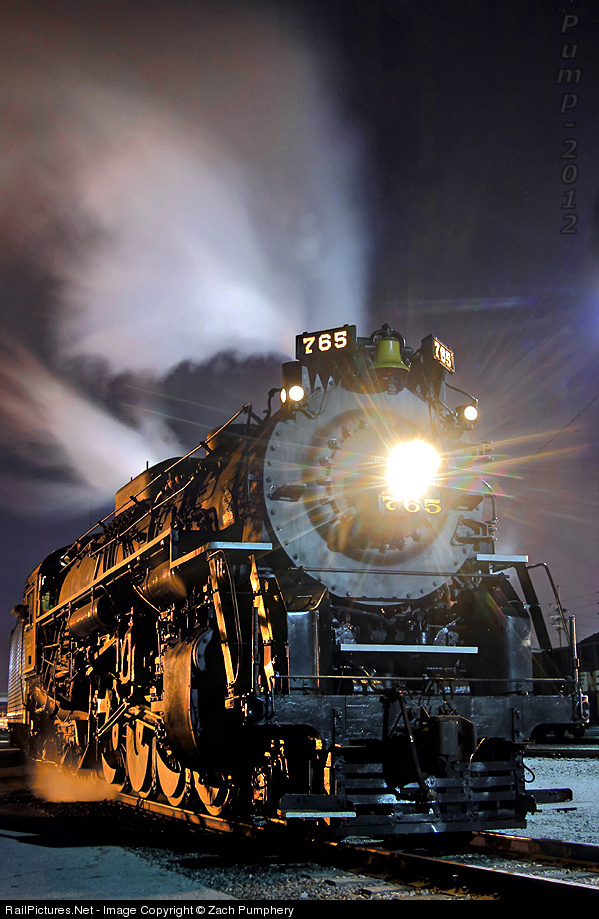 Nickel Plate Road 765 sits at NS Berkeley Yard after a day of running down from Decatur, IL as NS Train 099. A pair of Fort Wayne Railroad Historical Society Watchmen are up on the engine keeping her hot through the night and were very accommodating to our requests for the headlight, numberboards and classification lights to be on.