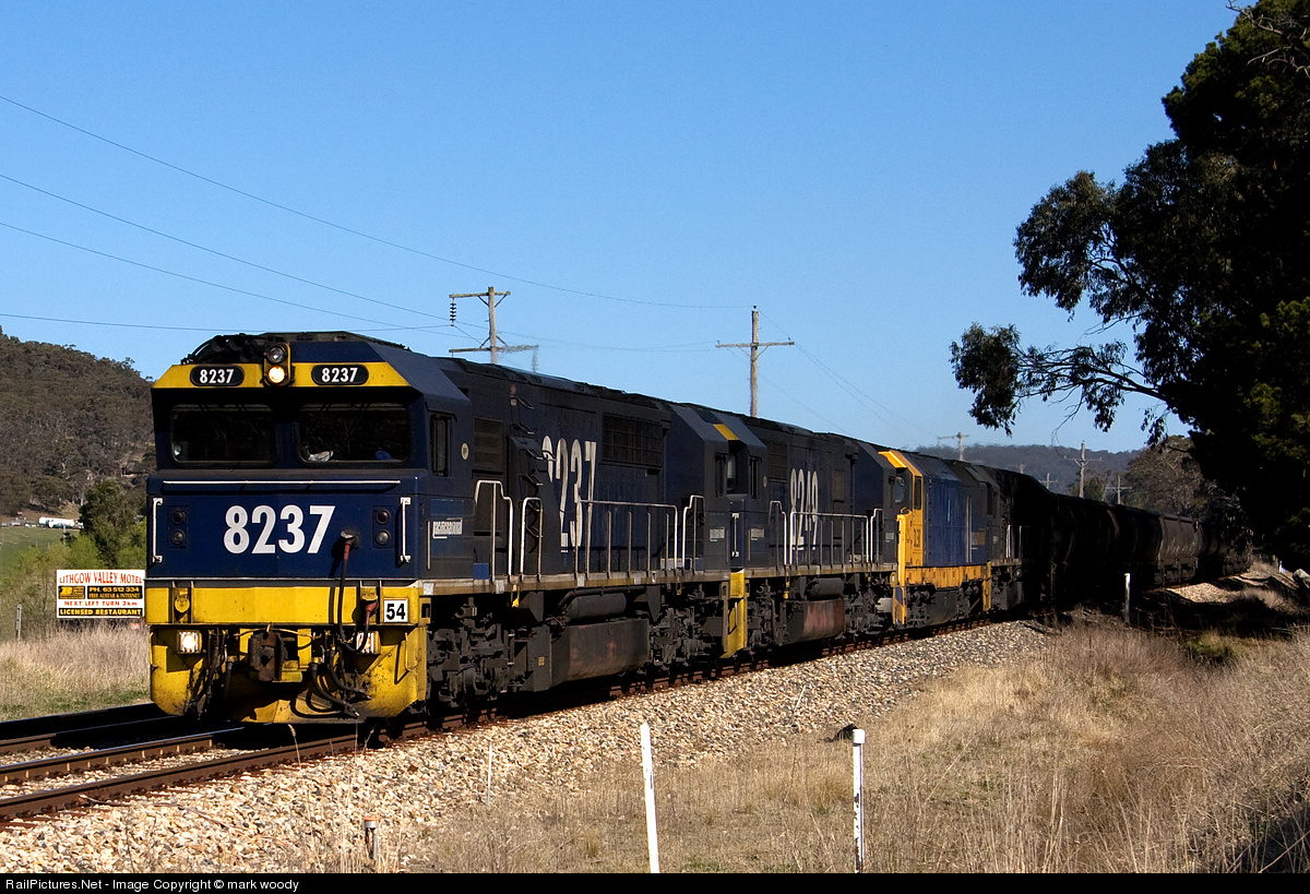| Working an empty coal train JT42C 8237 built in nov 1994-JT42C 8249 built in mar 1995-AT42C DL38 built in jul 1988-JT42C 8216 built in jul 1994 run at track speed as they head to Lidsdale to load. |
