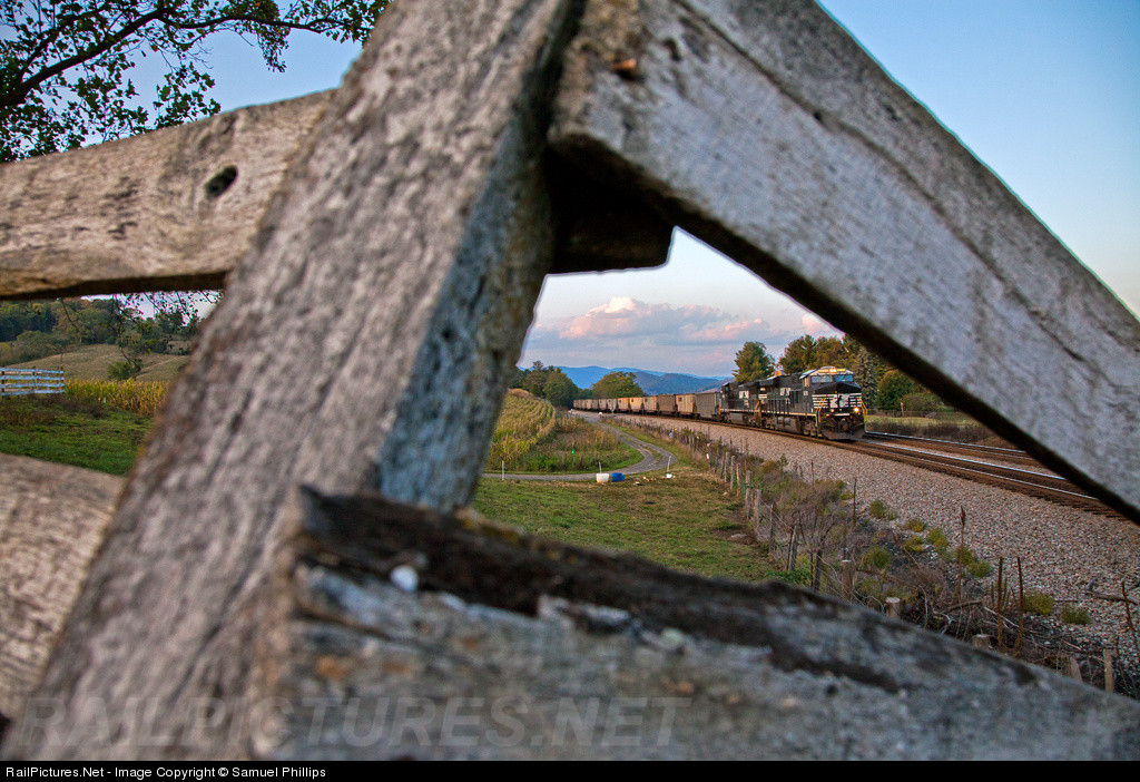 In the very last light of the day, NS 811 is pictured struggling uphill through the hamlet of Shawsville, VA with a pair of Norfolk Southern's newest horses doing the honors. This location marks the steepest part of Christiansburg Mountain, if a train will stall out, it will stall just short of the crossing in the distance. If a train makes it past this location, chances are it will finish the assault to the top of the mountain at Christiansburg.