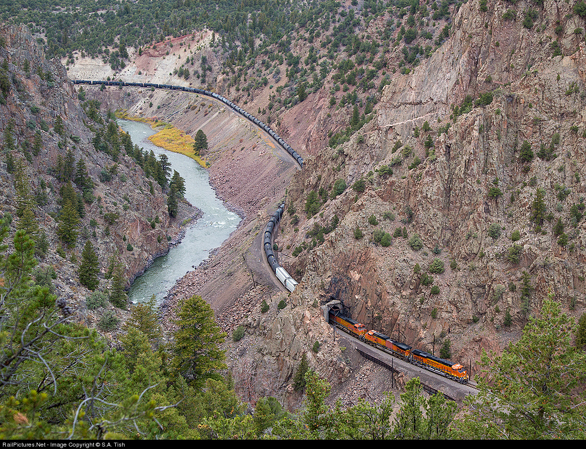 RailPictures.Net Photo: BNSF 6974 Burlington Northern Santa Fe GE ES44C4 at Radium, Colorado by S.A. Tish
