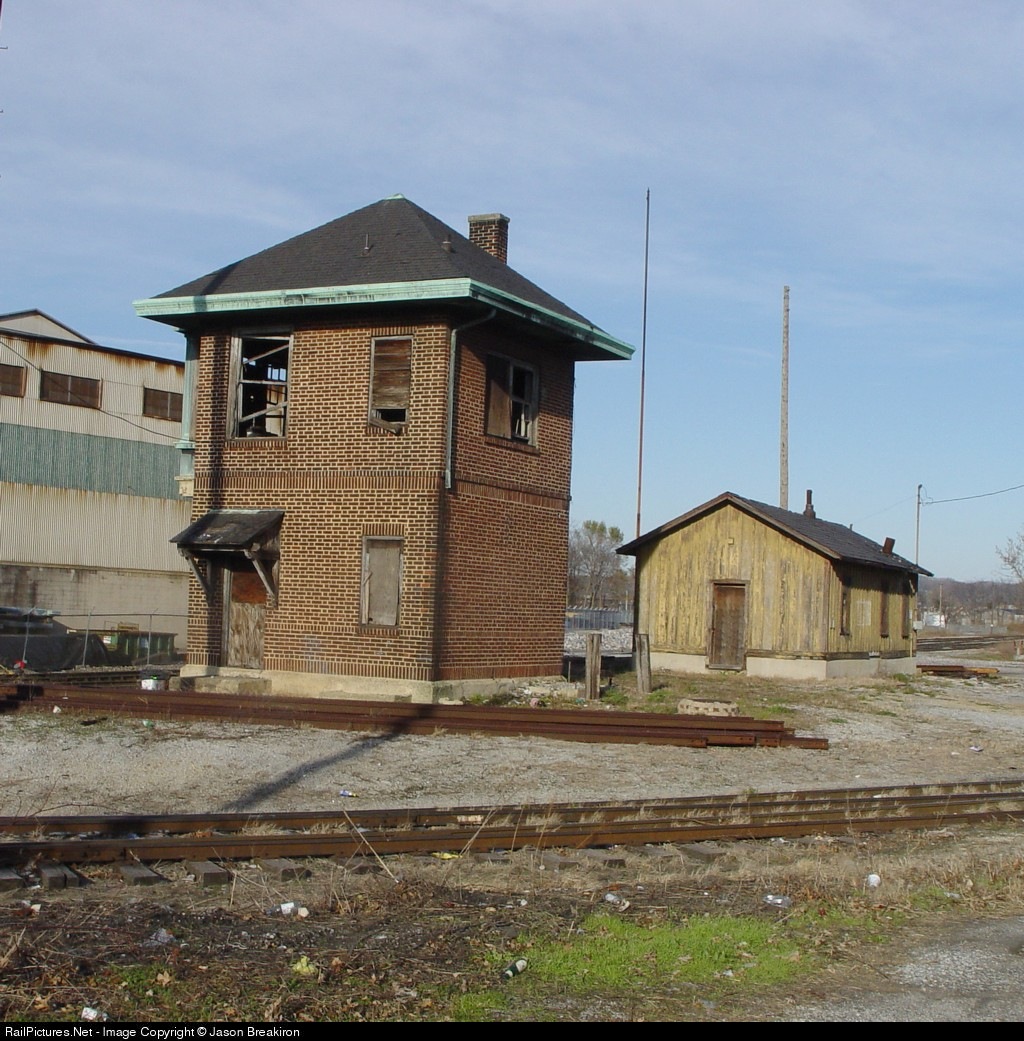 An Old Closed Tower & small Frieght shed sit abandoned at a Double diamond & entrance to the NS Interchange Yard along the York Railway
