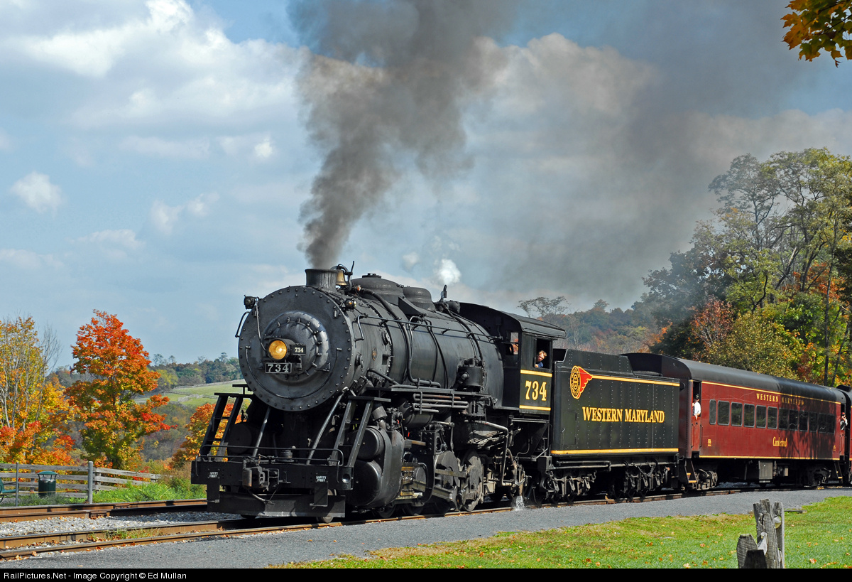 RailPictures.Net Photo: WMSR 734 Western Maryland Scenic Railroad Steam 2-8-0 at Frostburg, Maryland by Ed Mullan