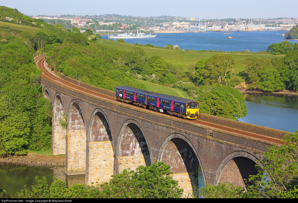 | Class 150, no. 150130 crossing Forder Viaduct in Cornwall with a Gunnislake - Liskeard commuter train. The interesting route of this train takes it under the Tamar Bridge out of view behind the hills to the left into Plymouth and back out again over the same route as far as Keyham.