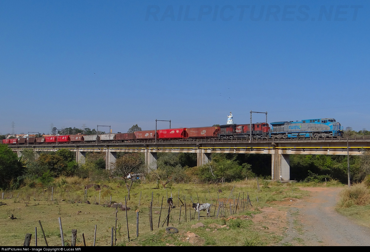 | Southbound loaded X66 crossing the huge viaduct at region of Salto, before arrive at Itu, for crew change. |