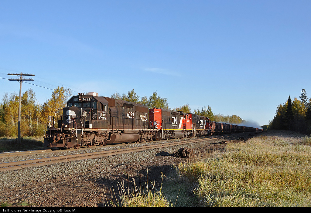 | Coming down from U.S. Steel Minntac with 141 loads of steaming taconite pellets, IC 6252 prepares for the shove and will yard the train in Keenan before eventually going down to Proctor with them. |