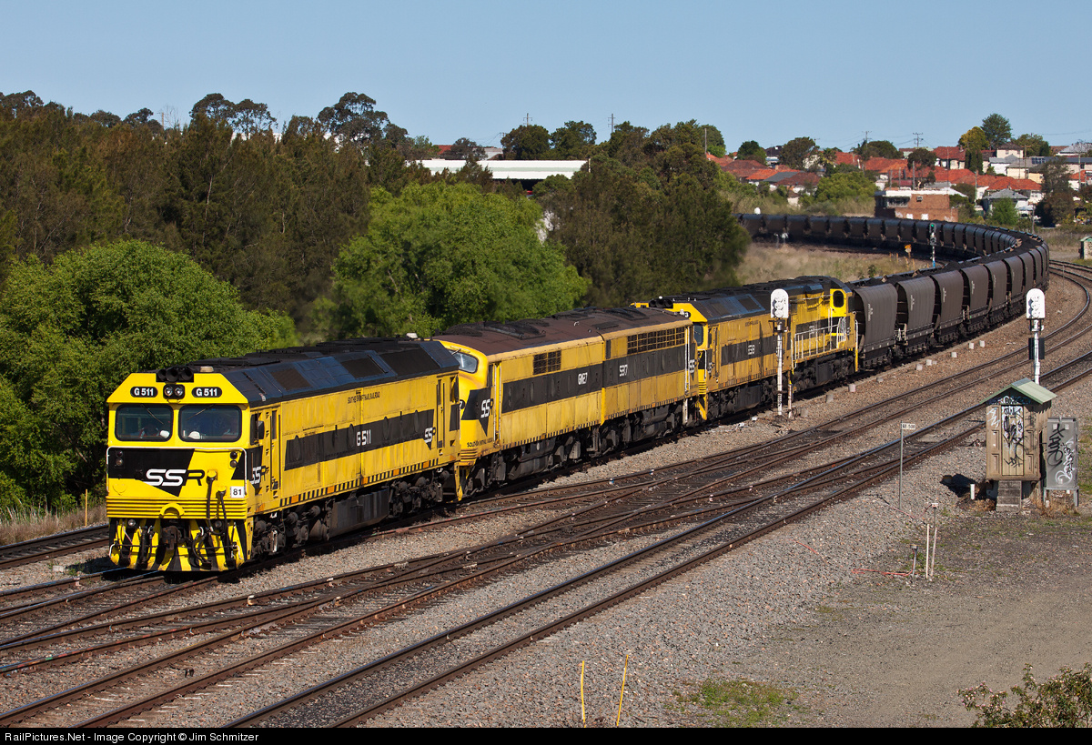 The changing face of SSR coal haulage in the Newcastle area.Powering this train we find 2 Gs, a GM, a S and a C. Eventually they`ll be displaced onto other working when SSRs GEs take over permanently.