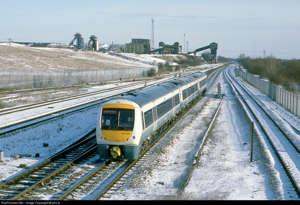A diverted Hull Trains Unit heads south with Hatfield Colliery in the background. Hatfield is one of the last deep mines still open in the UK.