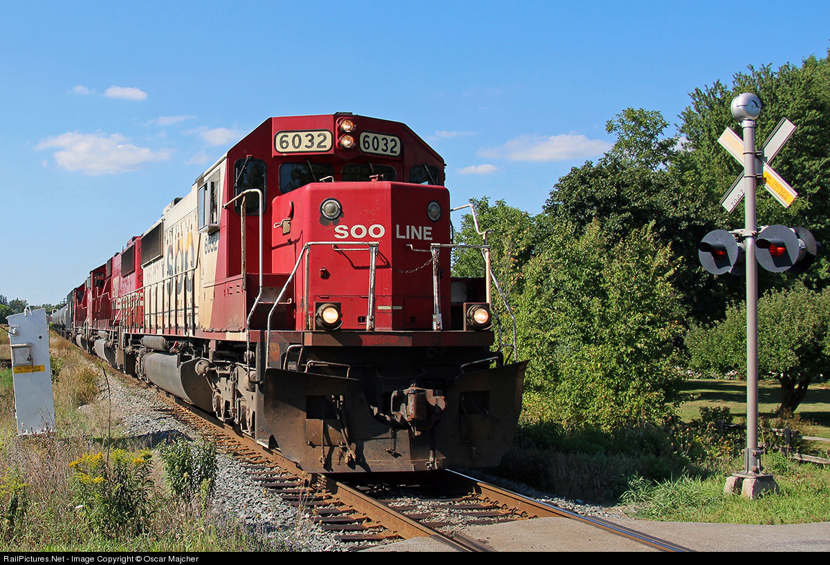 | A classy consist of SOO 6032, 6061, & 6044 lead CP 640 through the countryside of Progreston. |