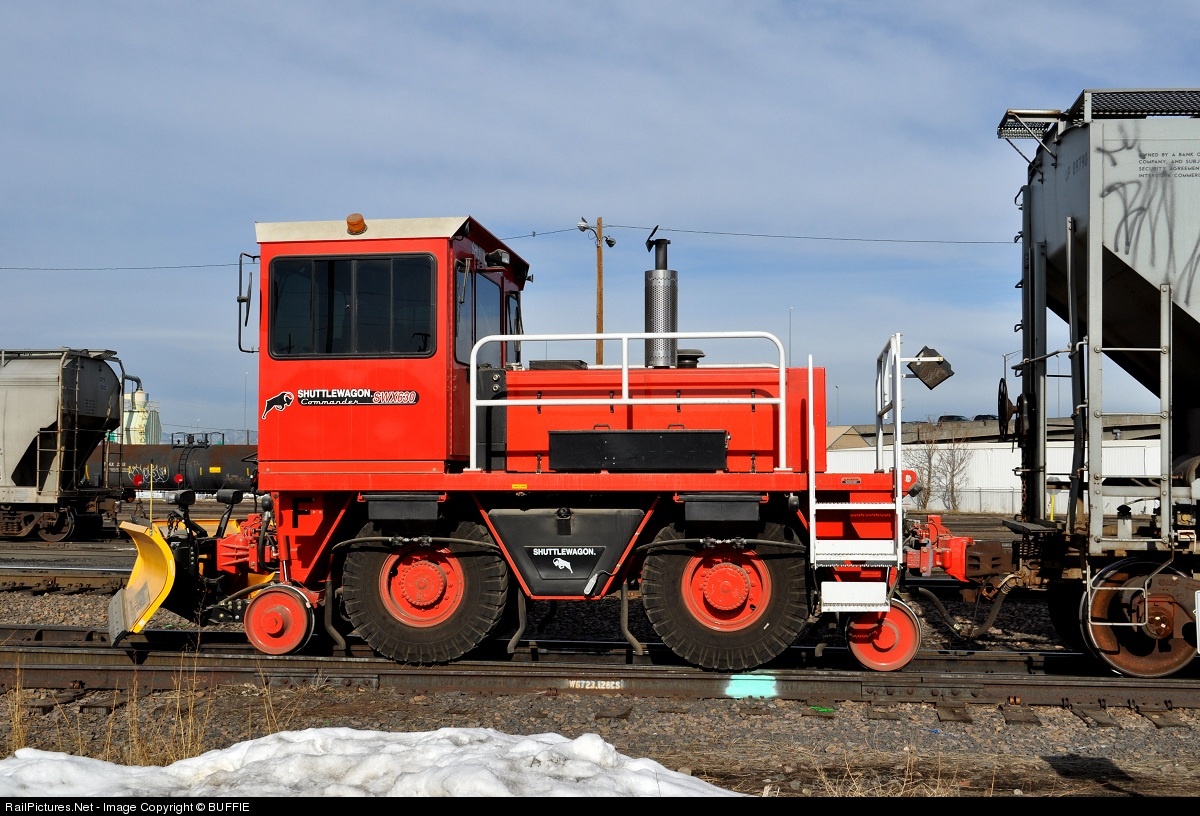 | This Shuttlewagon is used to shuffle grain cars to the Purina Dog Chow factory in Denver, operating off a spur from the Union Pacific's 36th Street Yard. |