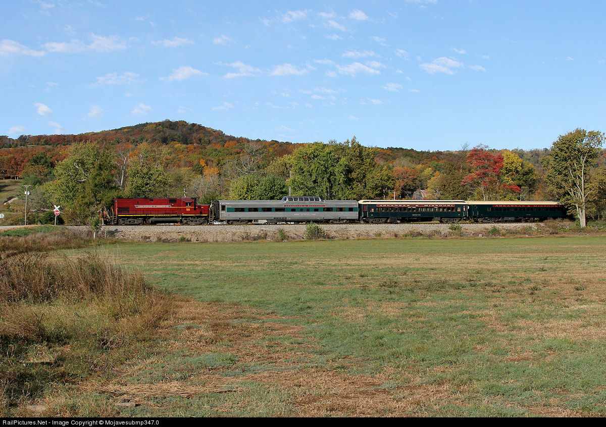 With fall colors on the hills as a backdrop, A&M 58 running long hood foward leads a charter special south.