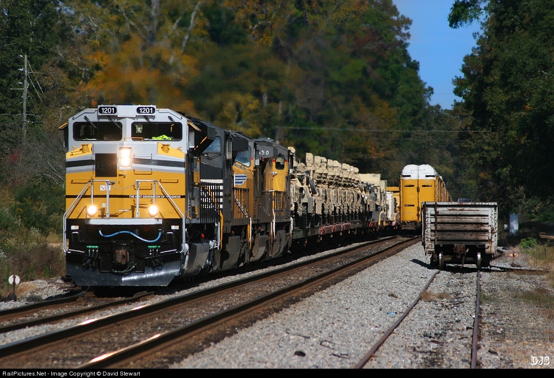 South bound NS train 052 which was combined with the CAT train 055 is seen passing through Arkwright, Ga. with the EMDX Tier lll demonstrator 1201 leading.