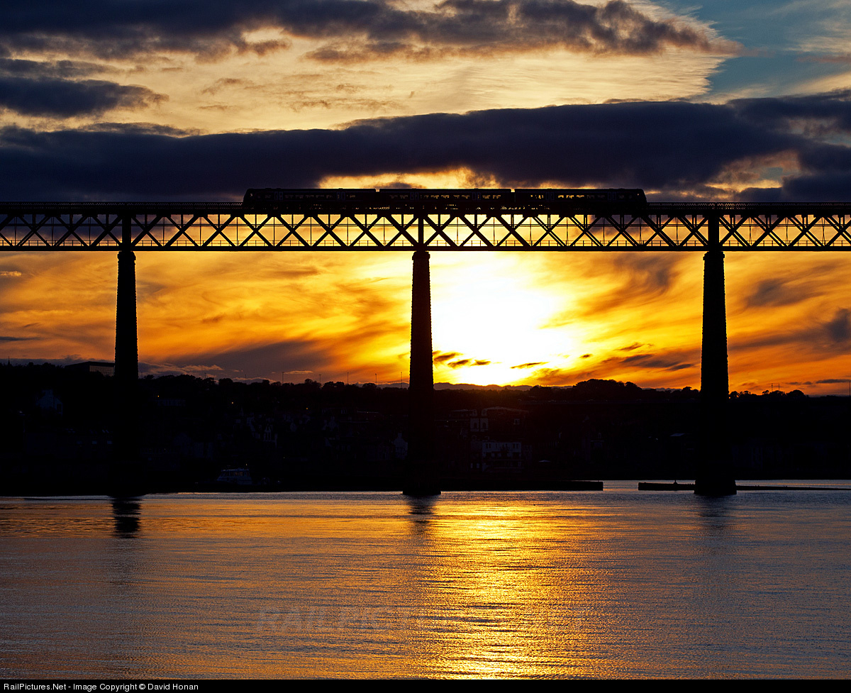 A spectacular sunset silhouettes a First ScotRail DMU gliding high above the Firth of Forth at South Queensferry, Scotland. The first few days of my honeymoon visit to Scotland were marked with lovely weather; of course, at the end of the week I would get soaked, but that's a story for another photo...