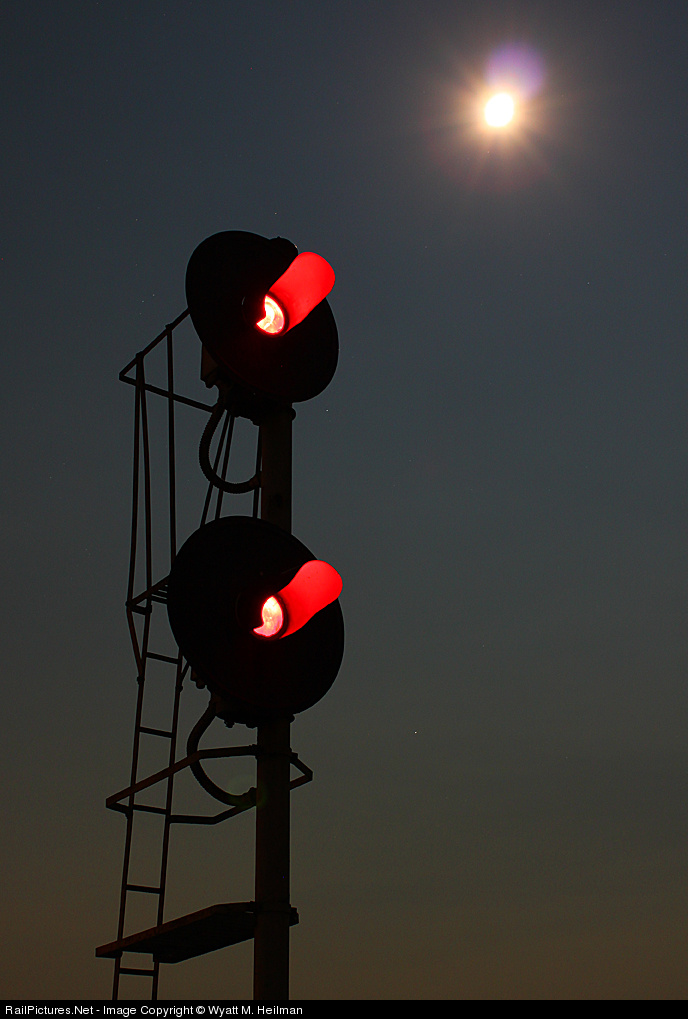 | Original Wheeling & Lake Erie searchlights still stand guard at a few locations on Norfolk Southern's Toledo District, including the E.E. Williston. It's a typical quiet night on the former Wheeling, with a not-quite-full moon hovering overhead. |